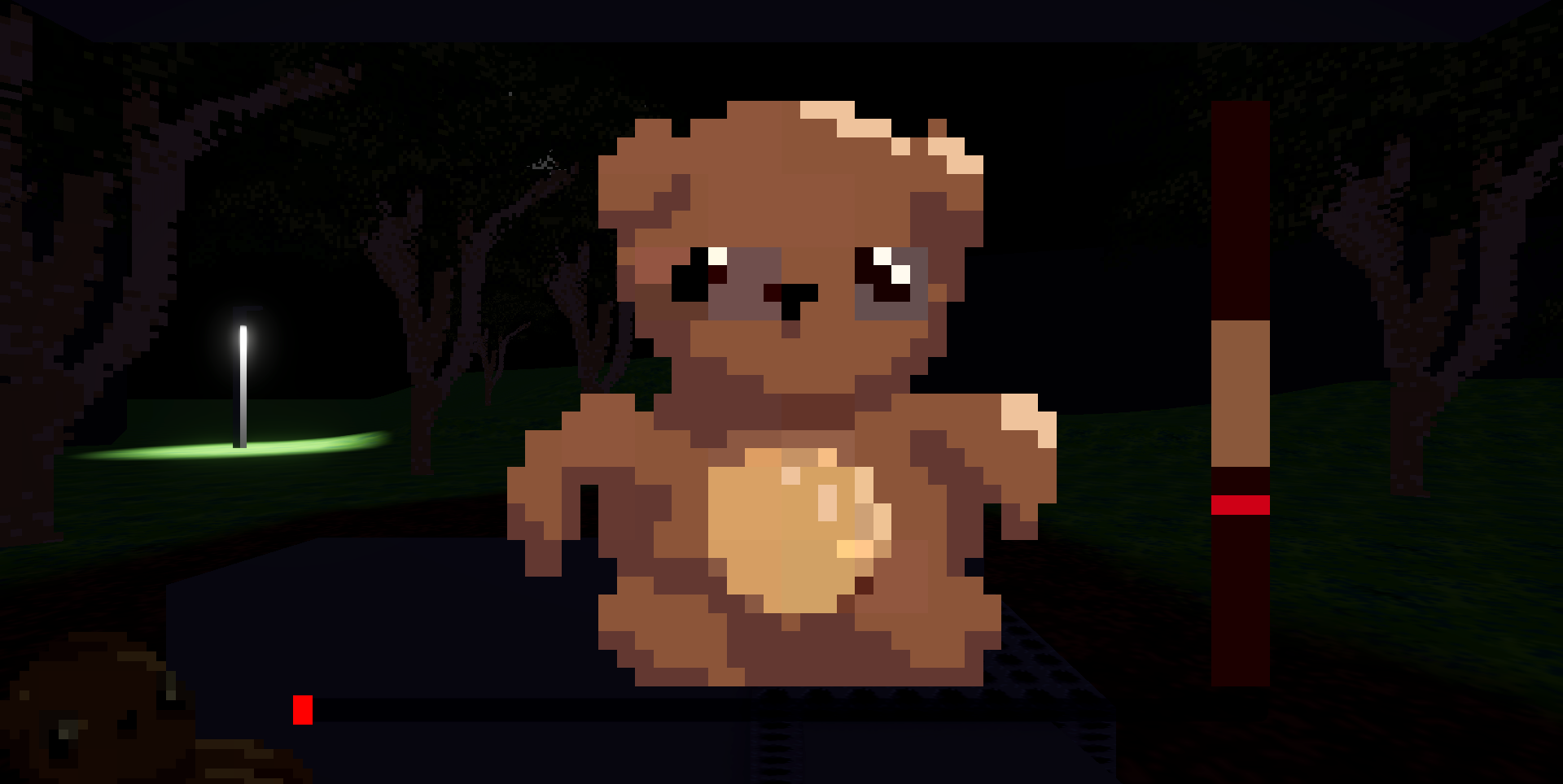 The premise is you are a child who forgot their favourite teddy at the park. You decided to go look for it in the afternoon but night appeared all too soon. Now you must wait 5 minutes for your mum to arrive to pick you up.